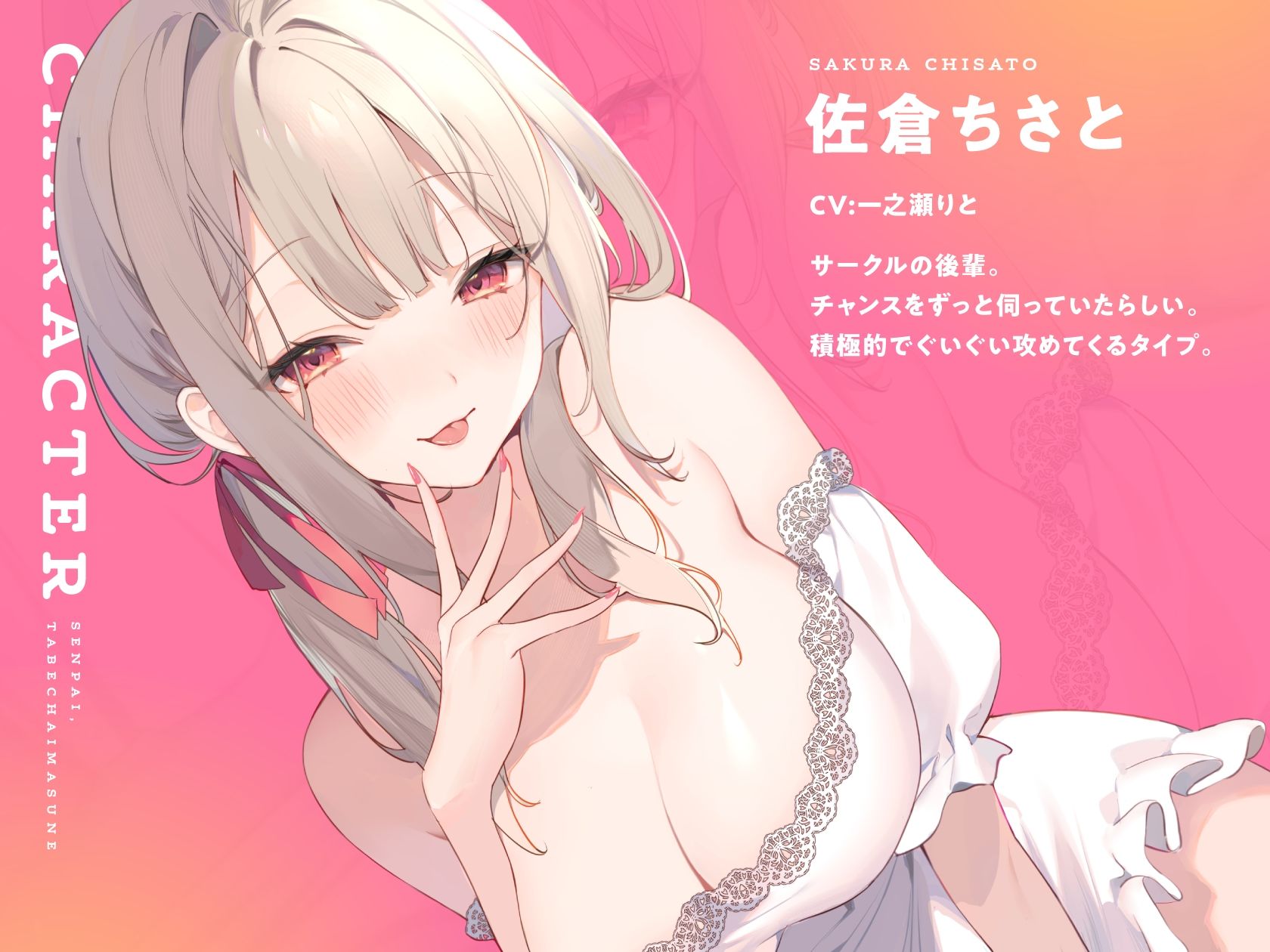 ジャンル: 中出し、恋人同士、おっぱい、後輩、男性向け、成人向け、ささやき、女性優位、乳首責め、正常位、寸止め、逆NTR