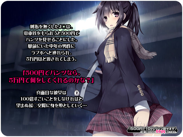 「500円で10分パンツ見せます」と言う援交少女に5万円積んでみた。 あらすじ