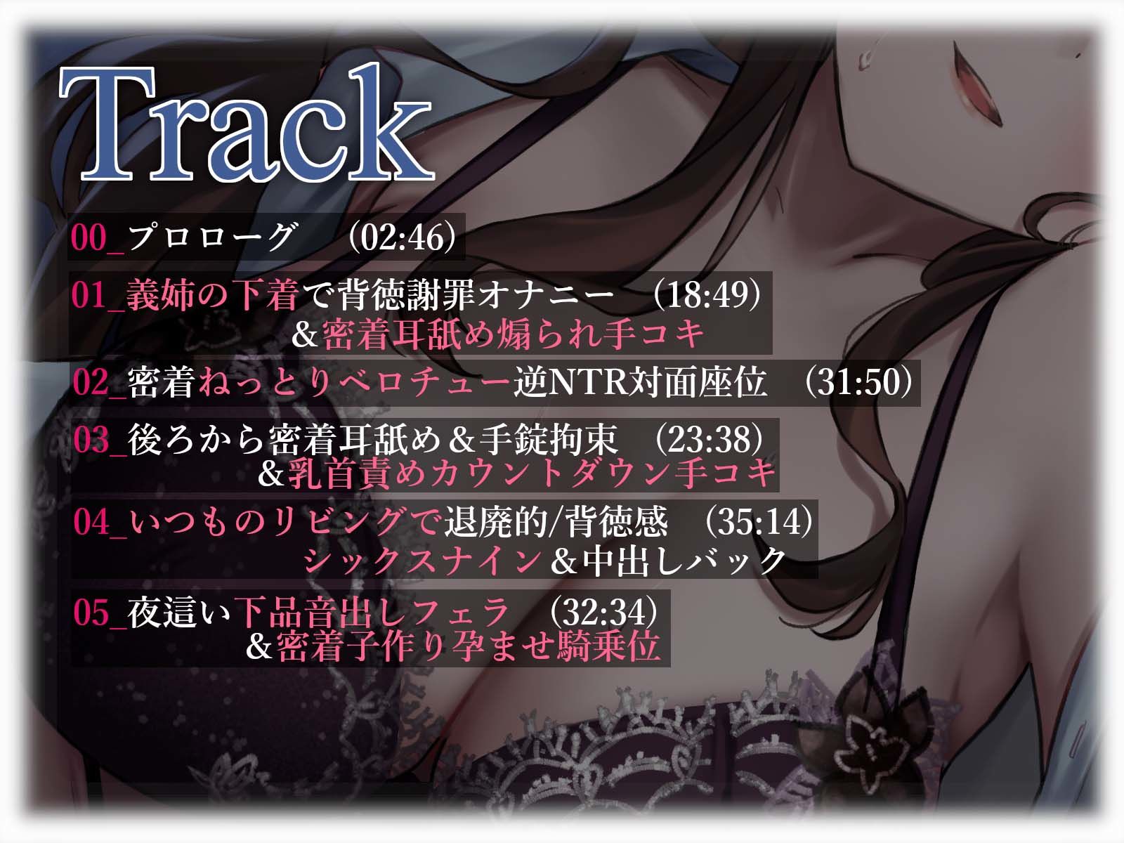 ジャンル: 退廃・背徳・インモラル、逆転無し、義姉、男性向け、成人向け、バイノーラル、耳舐め、妊娠・孕ませ、男性受け、逆NTR
