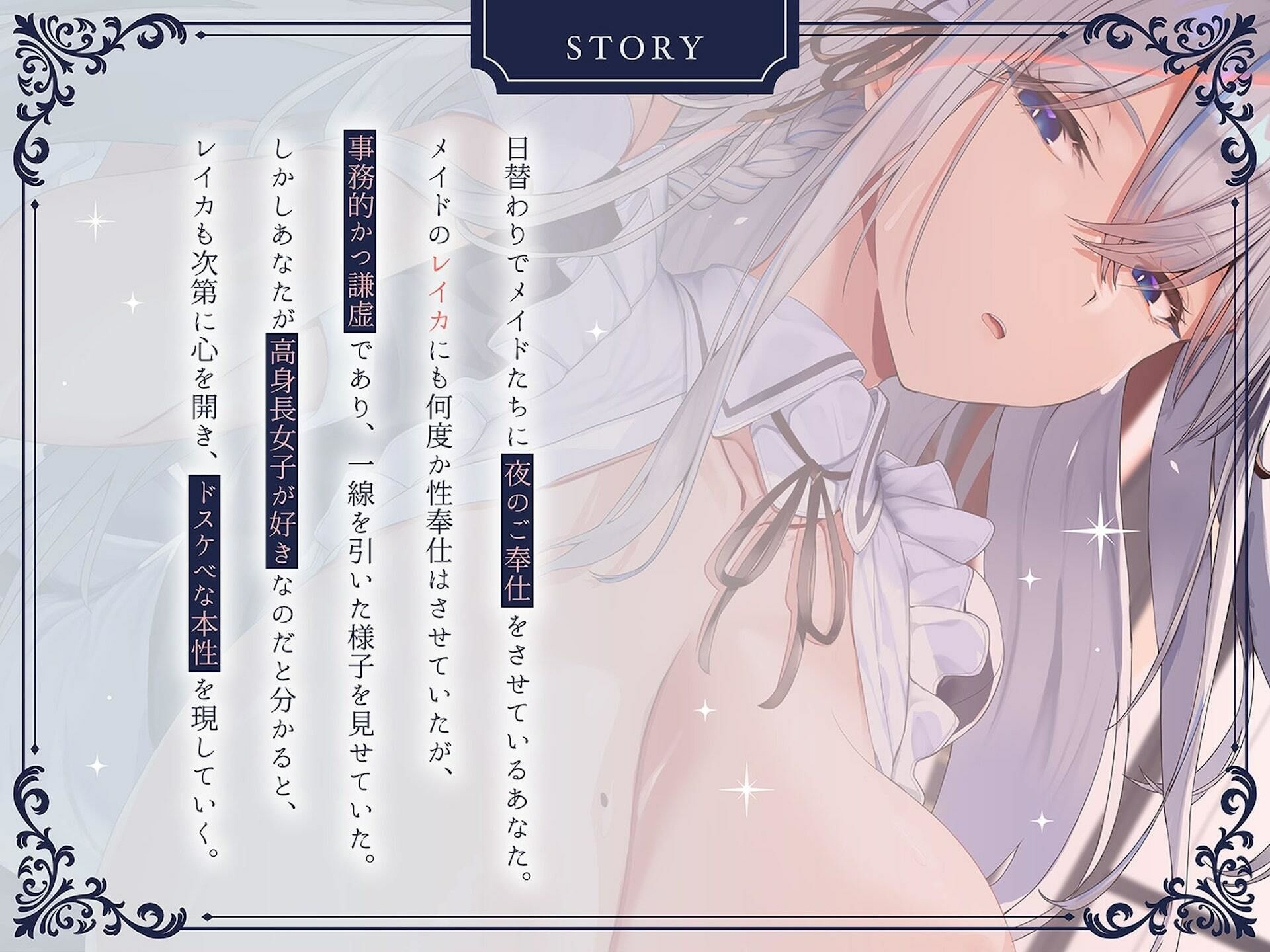 本作は、高身長であることにコンプレックスを持つメイドから性奉仕を受ける作品です。