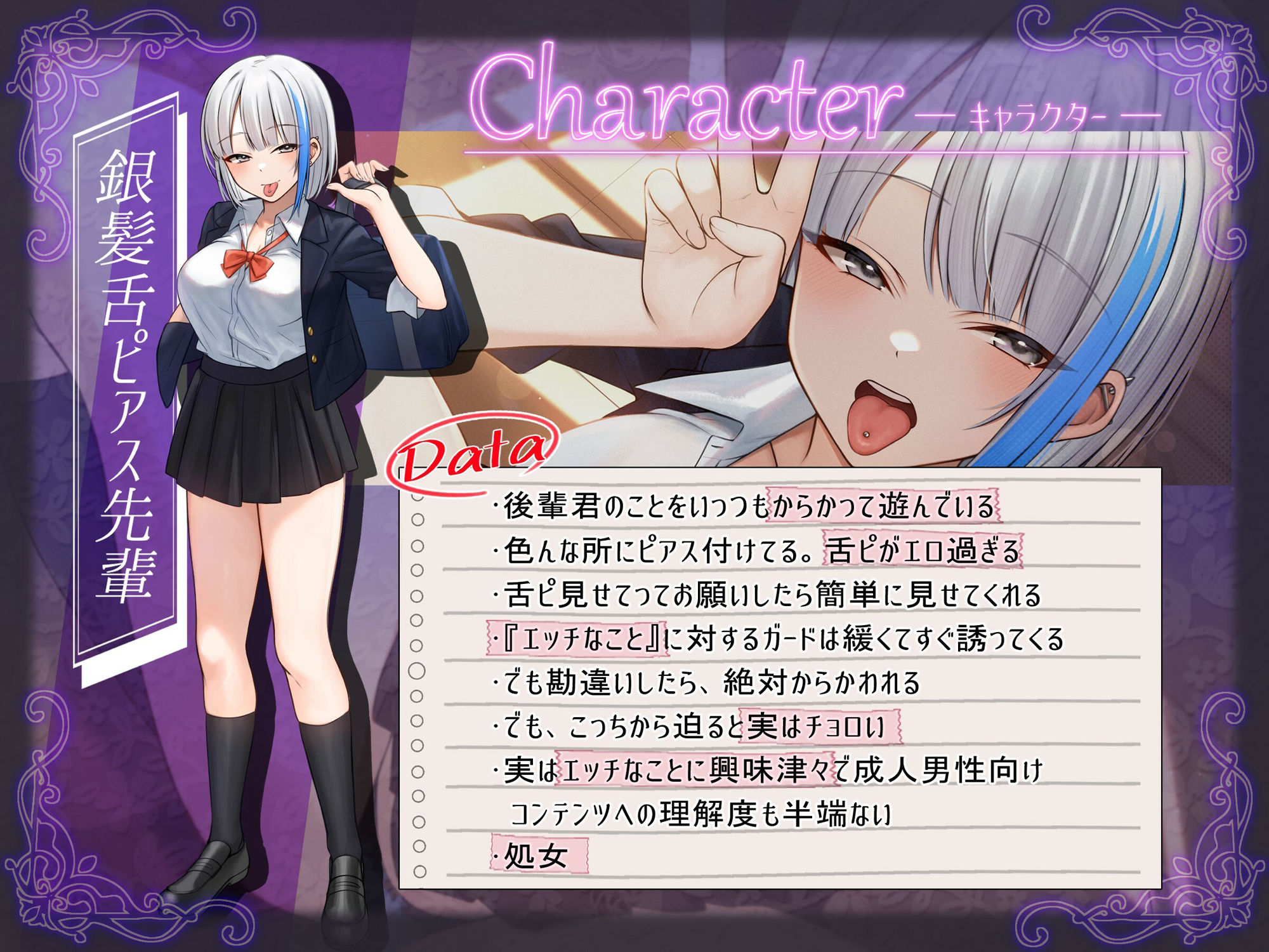 星宮あき様の創作オリジナルキャラクター『銀髪舌ピアス先輩』をお借りした音声作品となります!