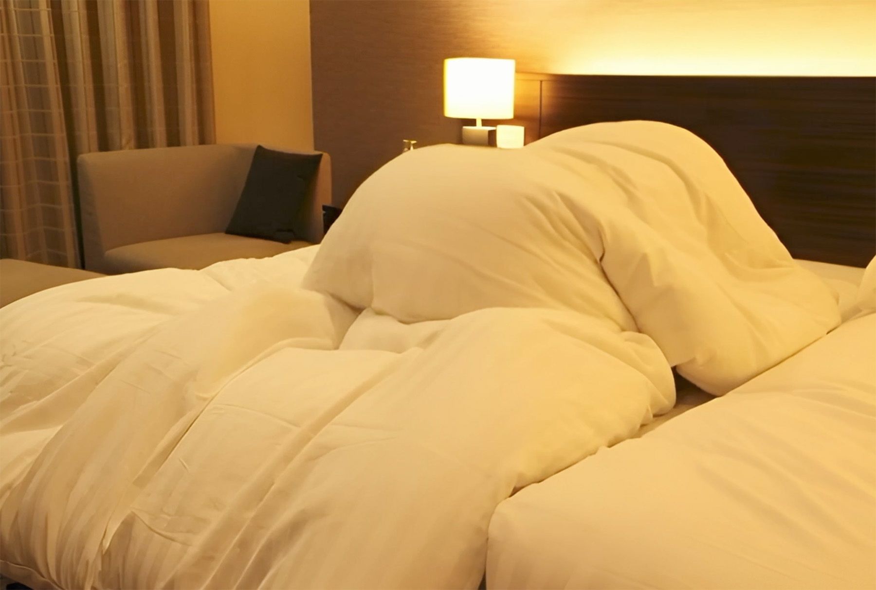 エロく揺れる布団やドレスが想像力を掻き立てます。