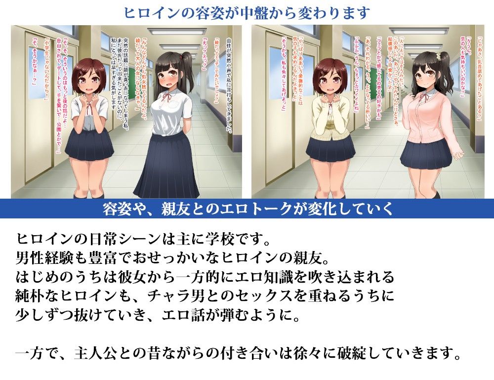 ヒロインは処女の頃のウブな会話から、経験したあとの友人とのエロ話、