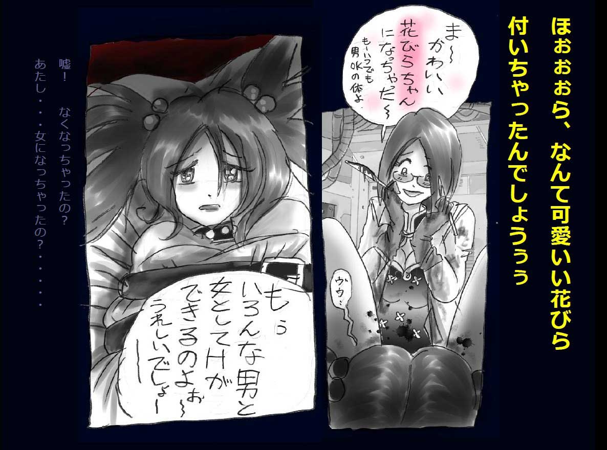 やっと妹とめぐり合えた時には優は妹の前で濃厚に化粧をし、豊満な肉体を女として見せびらかす淫乱女としての精神を埋め込まれていたのであった…失望のうちに、優は伊集院ラボに連れて行かれ、さらに醜虐な女性化肉体改造を施される…強●去勢、強●巨乳豊胸、強●陰茎形成手術、優は弩変態な淫乱女へと改造されていく…
