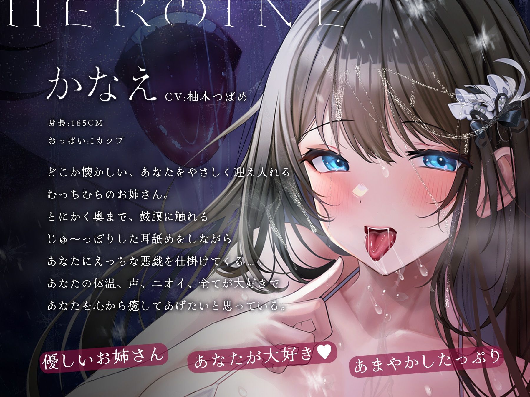 どこか懐かしい、あなたをやさしく迎え入れるむっちむちのお姉さん。とにかく奥まで、鼓膜に触れるじゅ〜っぽりした耳舐めをしながらあなたにえっちな悪戯を仕掛けてくる…。あなたの体温、声、ニオイ、全てが大好き。