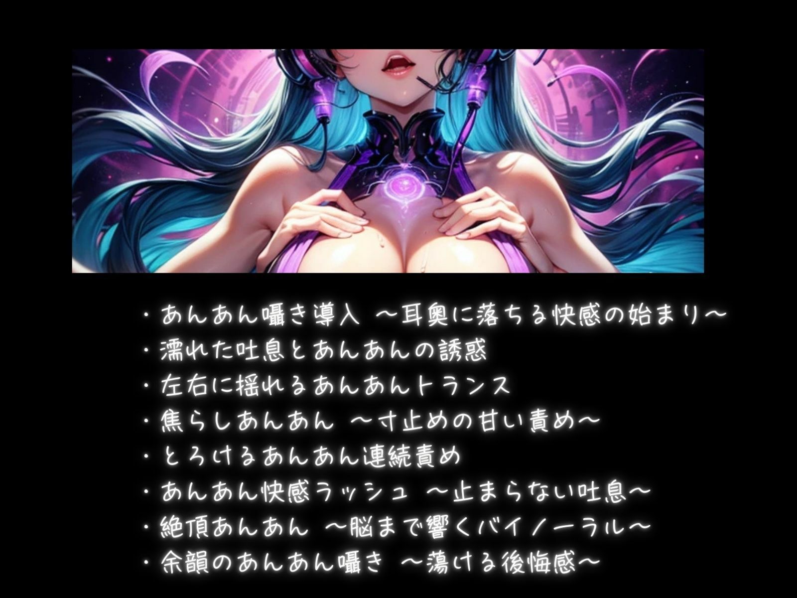 本作は、‘あんあん’喘ぎ声だけを極限までループさせた、催○系バイノーラル音楽作品です。
