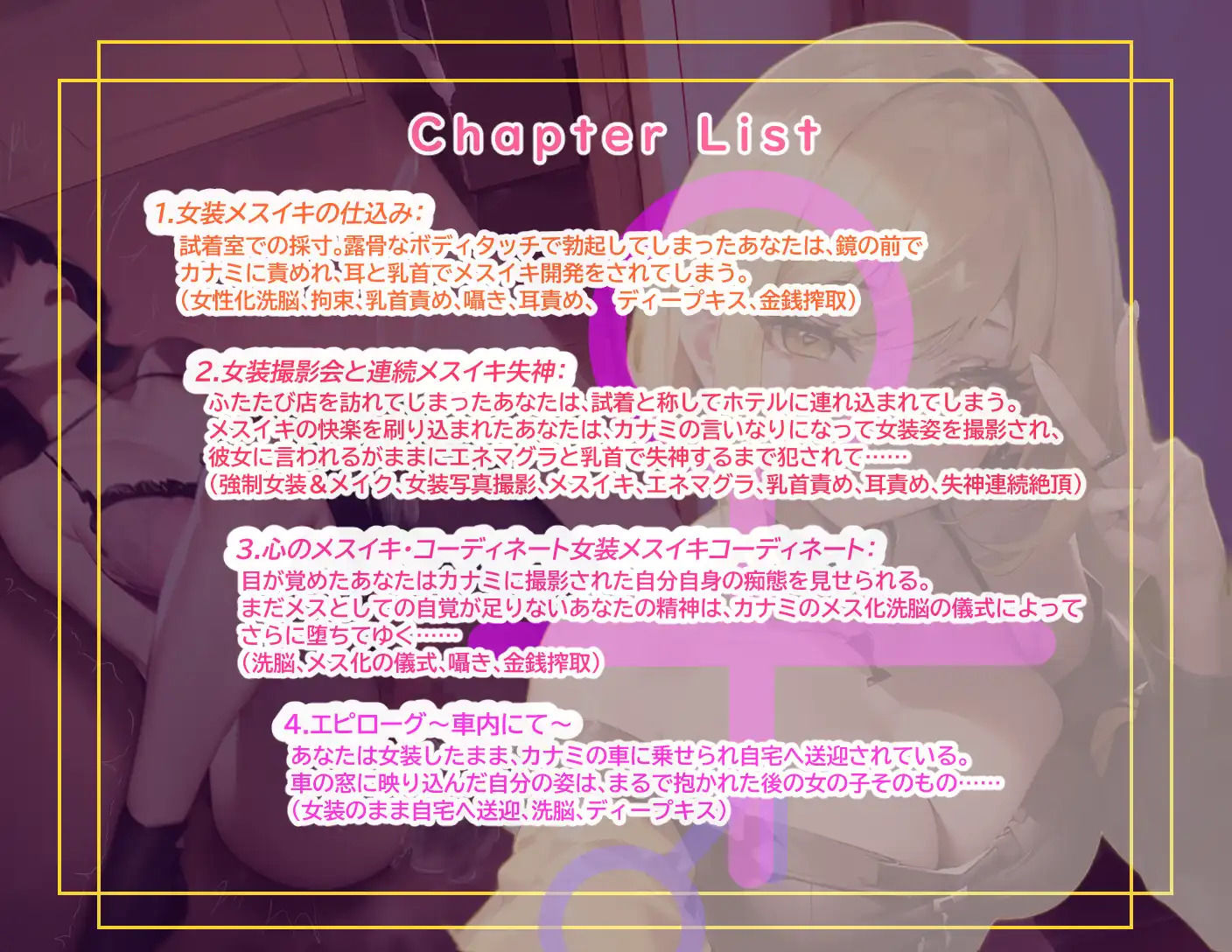 【アニメーション】女装メスイキ・コーディネート 〜アパレルショップのヤバい店員にハメられて女にされる〜【バイノーラル】 あらすじ