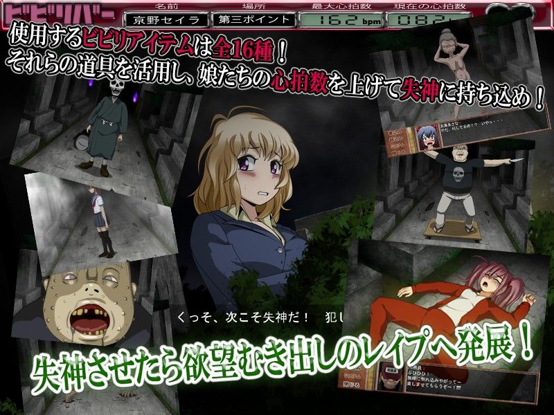 驚かせる度に画面上段にあるビビリゲージの心拍数が上昇、数値が190を超えると失神します。