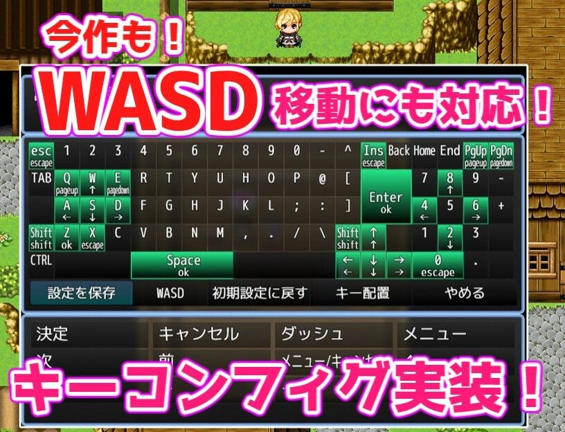 WASD操作対応、またキーコンフィグも実装。オプションから設定できます。