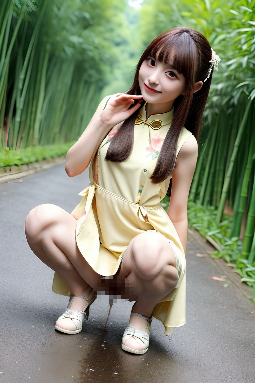 竹林に映える、可憐なチャイナ服娘たちの放尿撮影会。