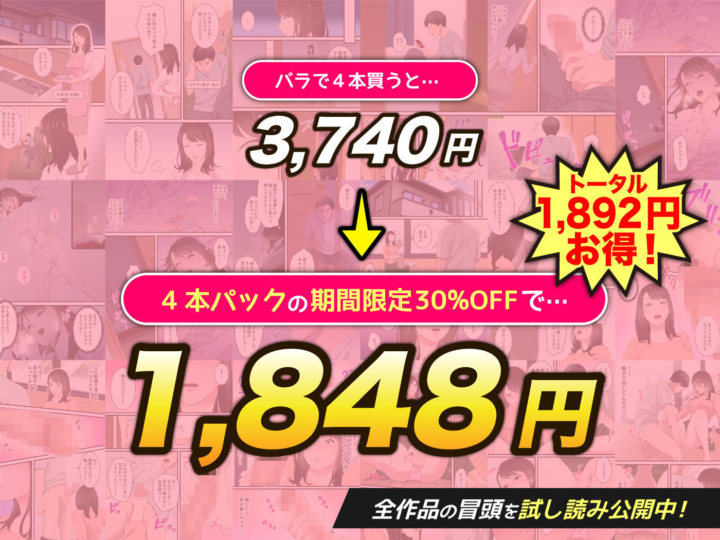 母子相姦もの(母親×息子)の4作品を収録したパックです。