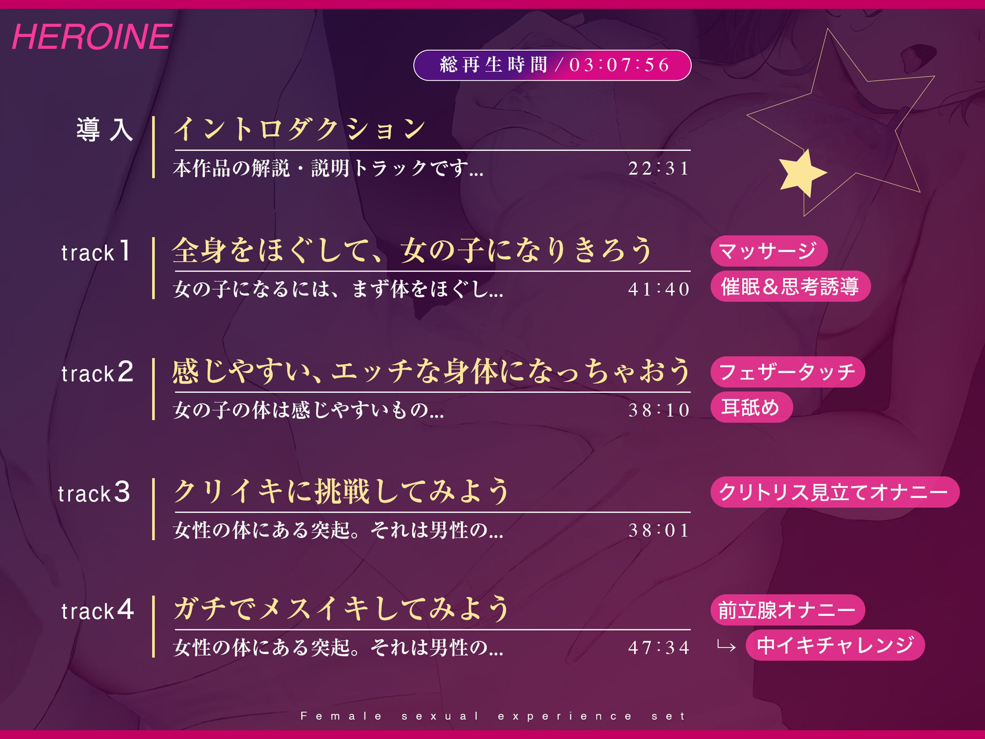 この音声では、じっくり体を「メス」の快感に近づけるため、4日間かけて1トラックずつオナニーを行っていきます。