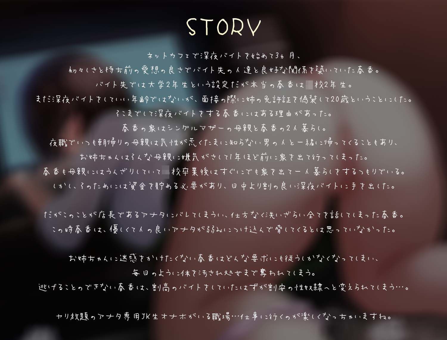 深夜のネカフェで働くJK生オナホ〜レ●プで精液まみれにされても絶対服従〜