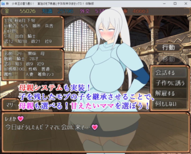 ジャンル: 音声付き、デモ・体験版あり、処女、人妻・主婦、巨乳、中出し、ハーレム、シミュレーション、母親、男性向け、成人向け、アヘ顔、寝取り・NTR