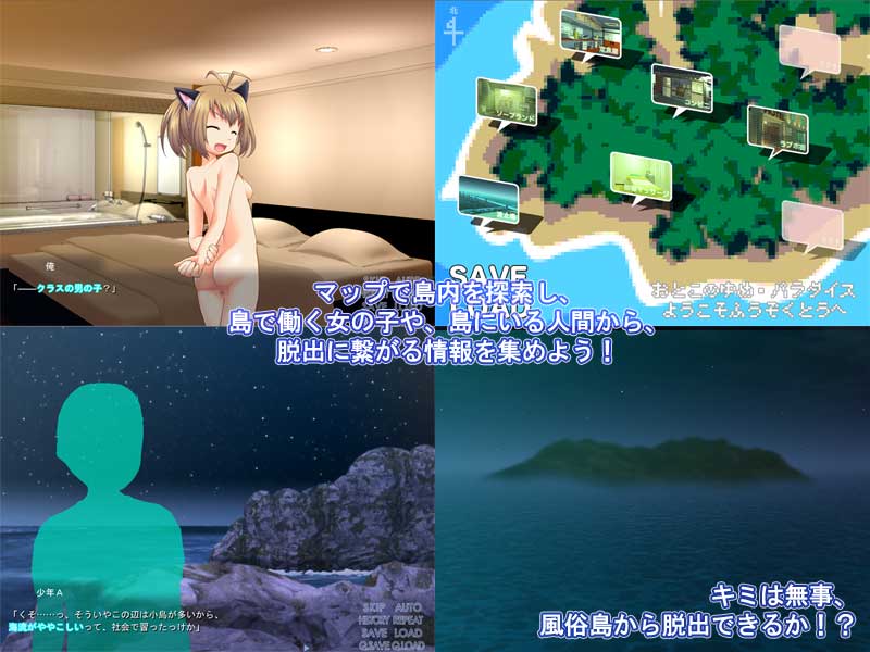 島で働く女の子達とエッチして、脱出に繋がる情報を集めよう。