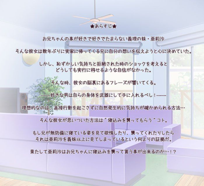 その際にどちらかを選択する事で、「お兄ちゃん視点」か「亜莉沙視点」が見れます。