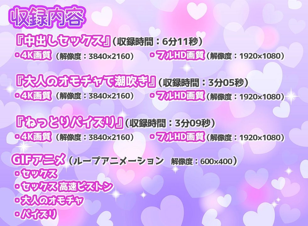 (再生端末によっては4K動画がカクつくことがあるため、フルHD画質(1920×1080)の動画も収録してあります。)