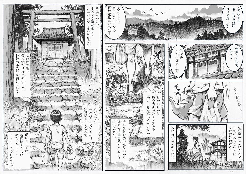 人間に化け損ねた爆乳巨尻タヌキ娘と少年の